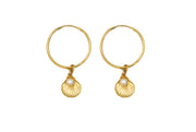- Hoops with Shell charms and pearls.