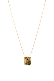 - Rectangle pendant with burst ray design.