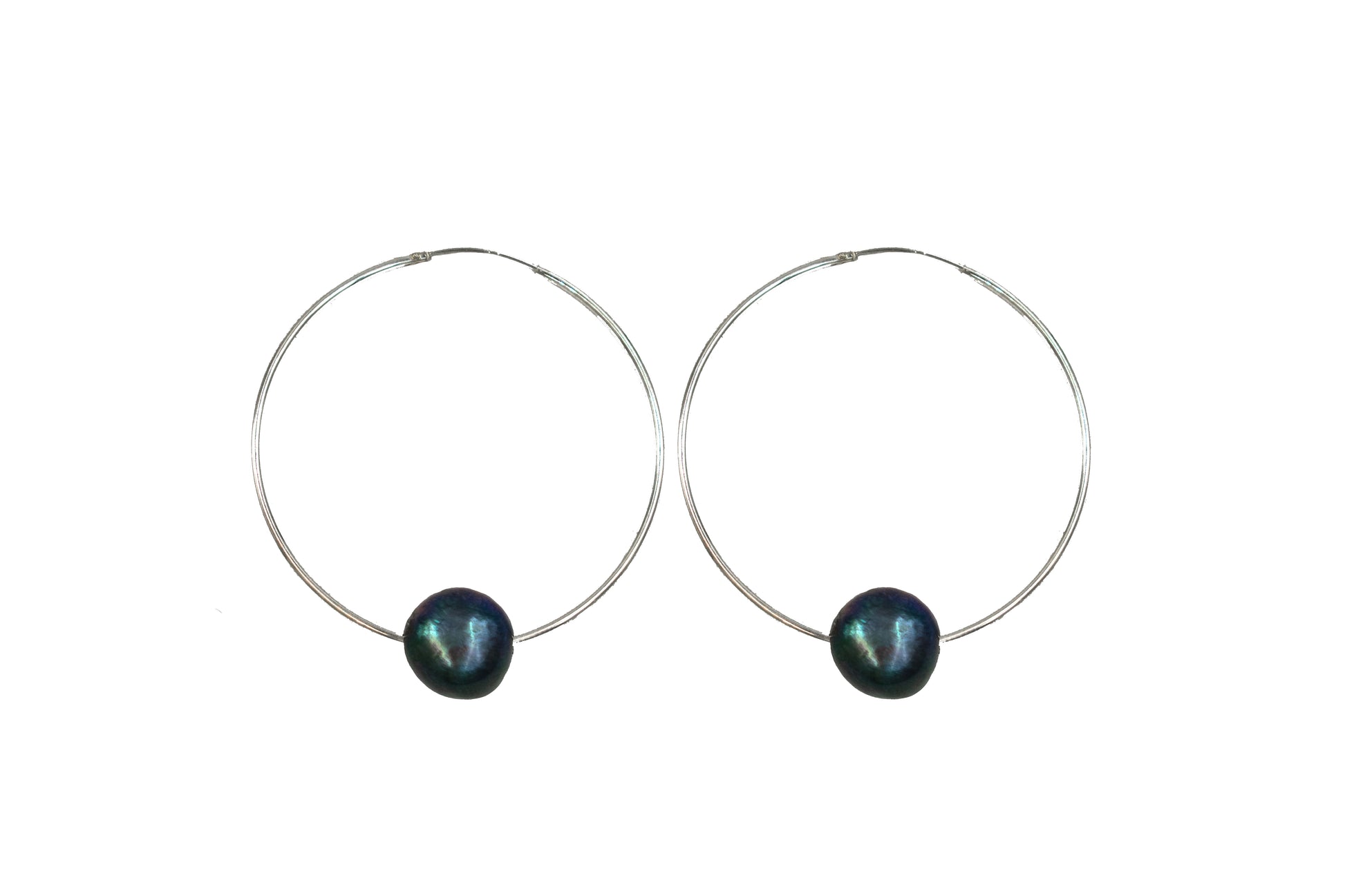 Black Floating Pearl Hoops