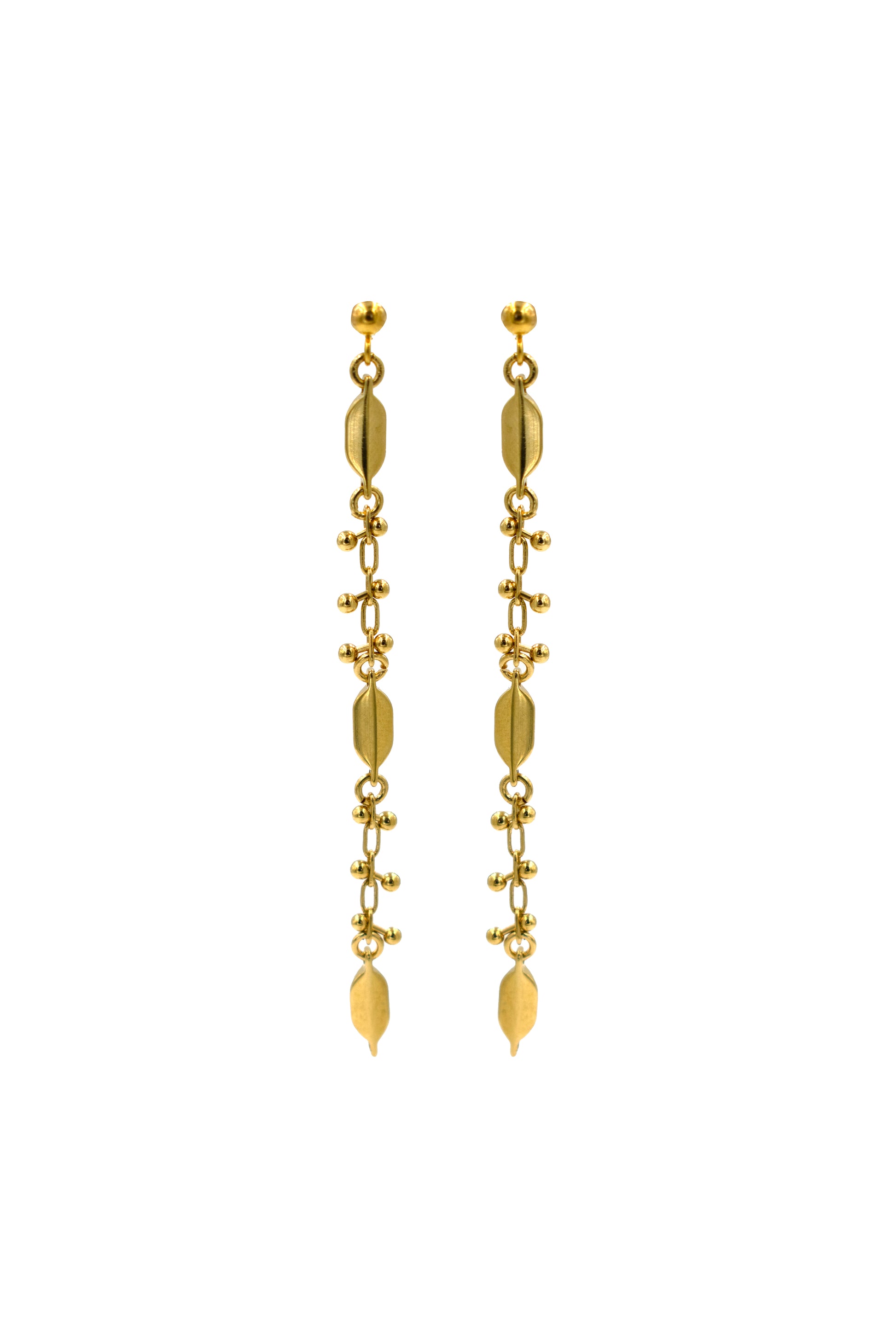 • Dramatic decorated chain drop earrings with 3mm ball studs.