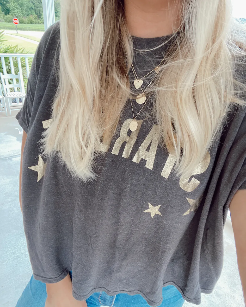 • Heart with sunburst design hangs from a 16" ball chain with extra little heart hanging from higher up on chain.