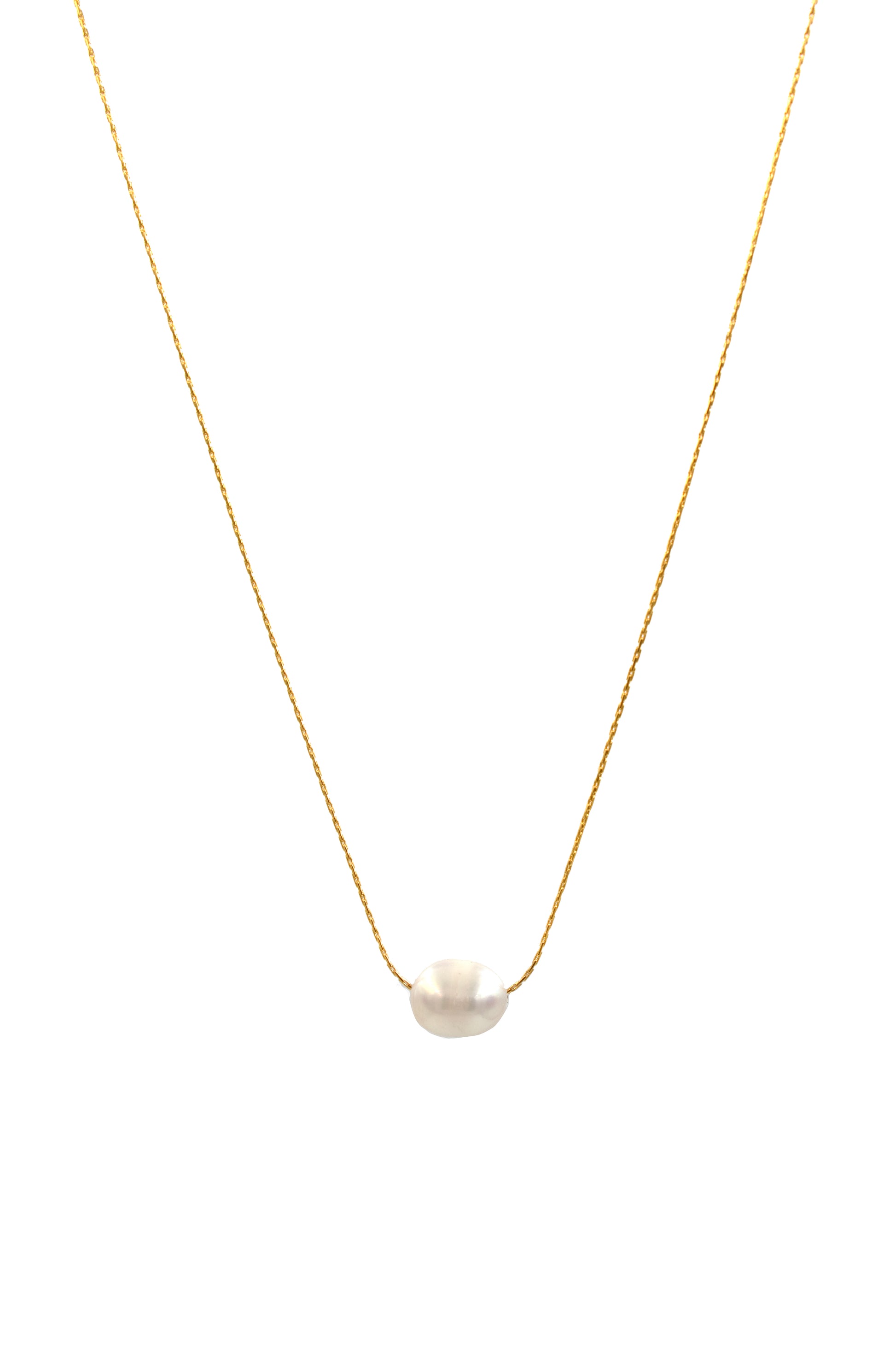 • Pearl floats on dainty snake chain.