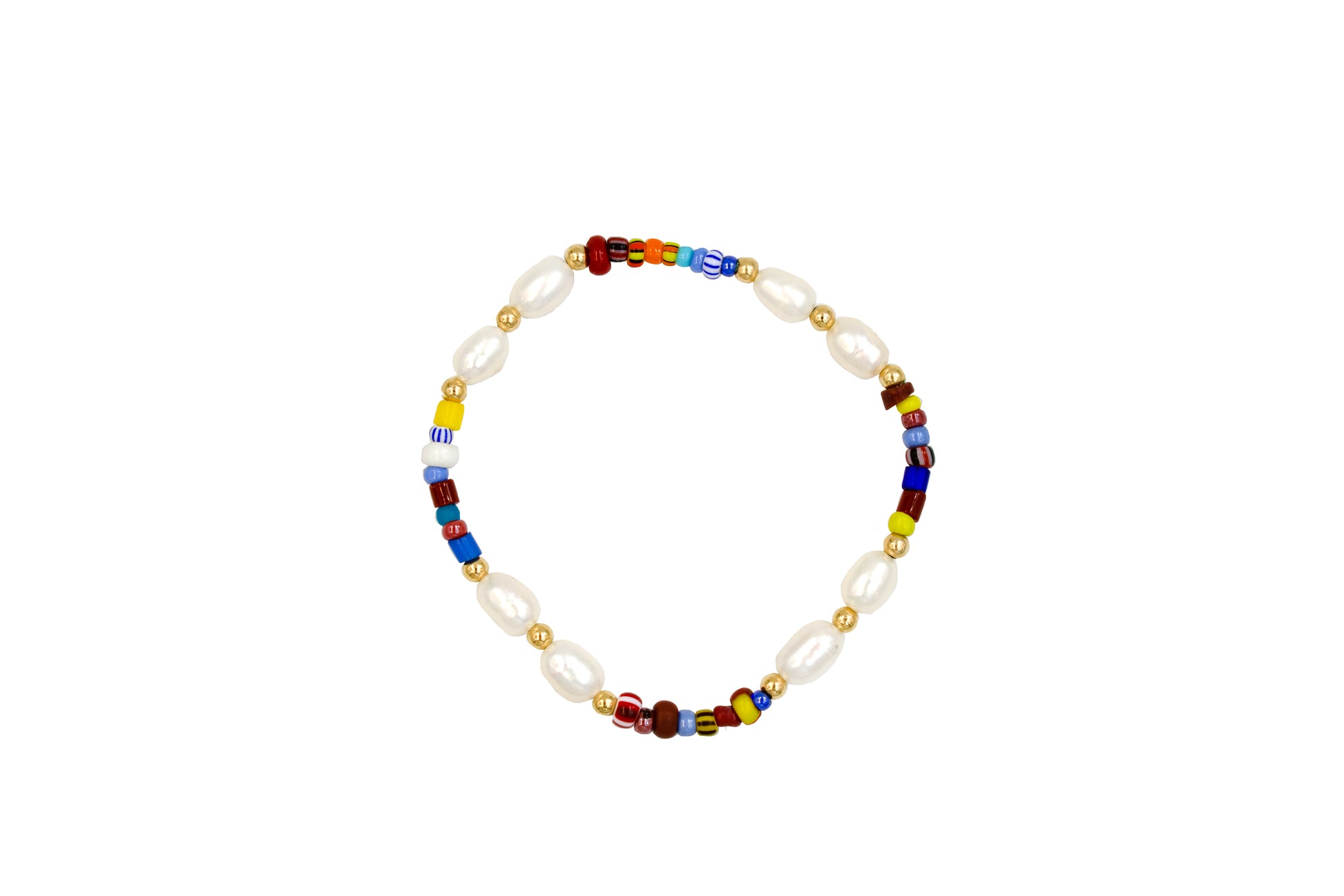 • Gold filled, glass, and pearl beads on elastic band.