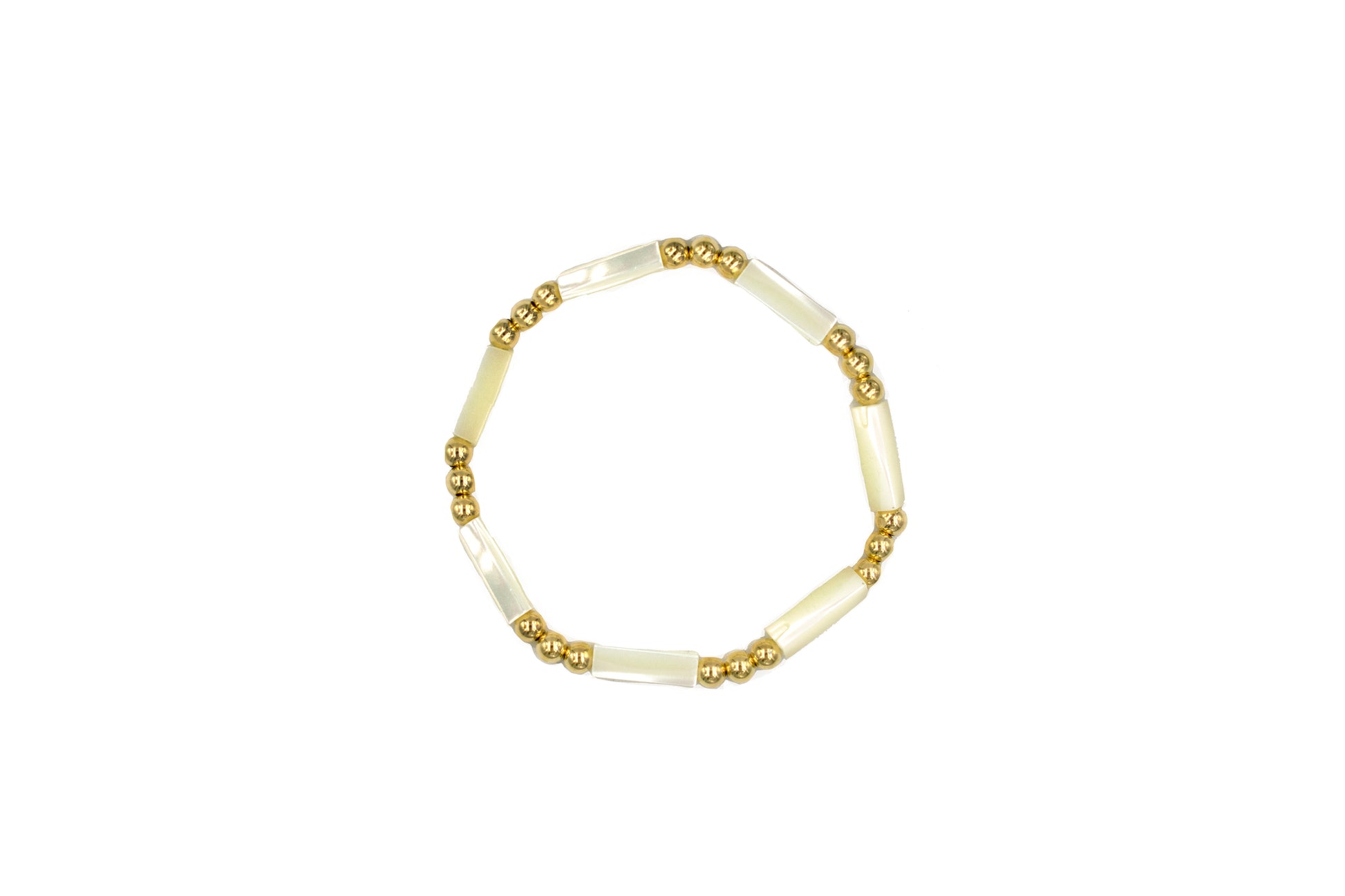 • Beaded bracelet with white mother of pearl beads.
